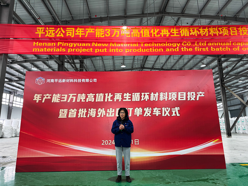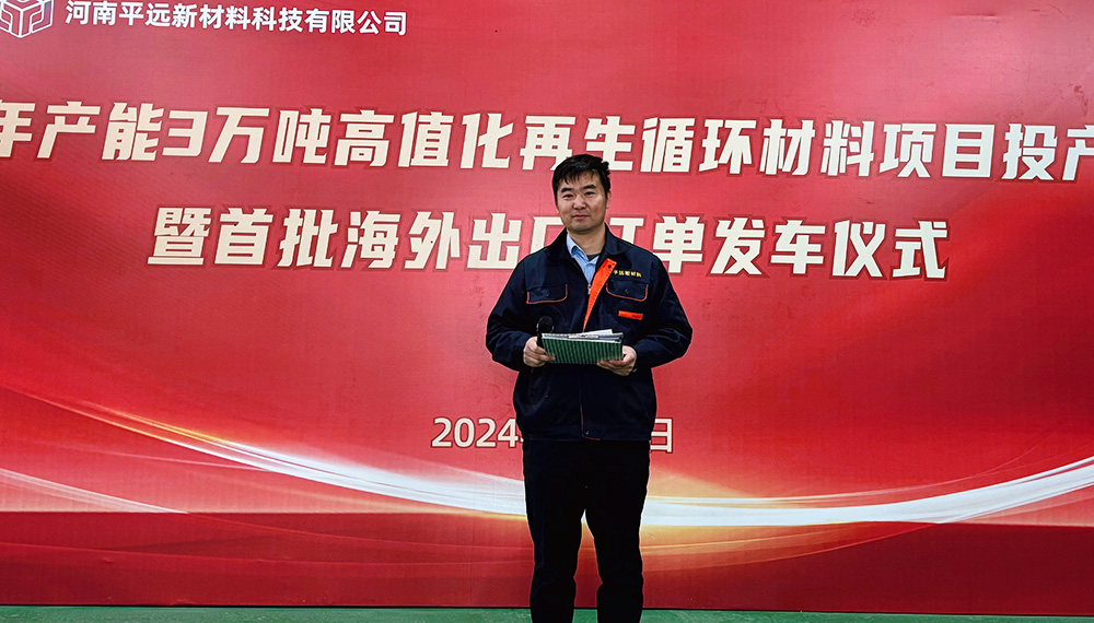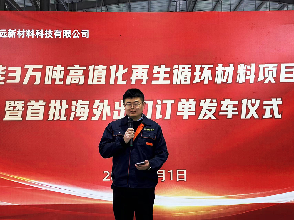 2024年2月1日,河南平遠(yuǎn)新材料科技有限公司在位于許昌市鄢陵縣的先進(jìn)制造業(yè)開發(fā)區(qū)內(nèi),成功舉辦“年產(chǎn)3萬(wàn)噸高值化再生循環(huán)材料項(xiàng)目投產(chǎn)暨首批海外訂單發(fā)車儀式”。平遠(yuǎn)公司重要領(lǐng)導(dǎo)及產(chǎn)區(qū)員工均參與了本次活動(dòng),為2024年的綠色創(chuàng)新發(fā)展掀開了新的篇章。