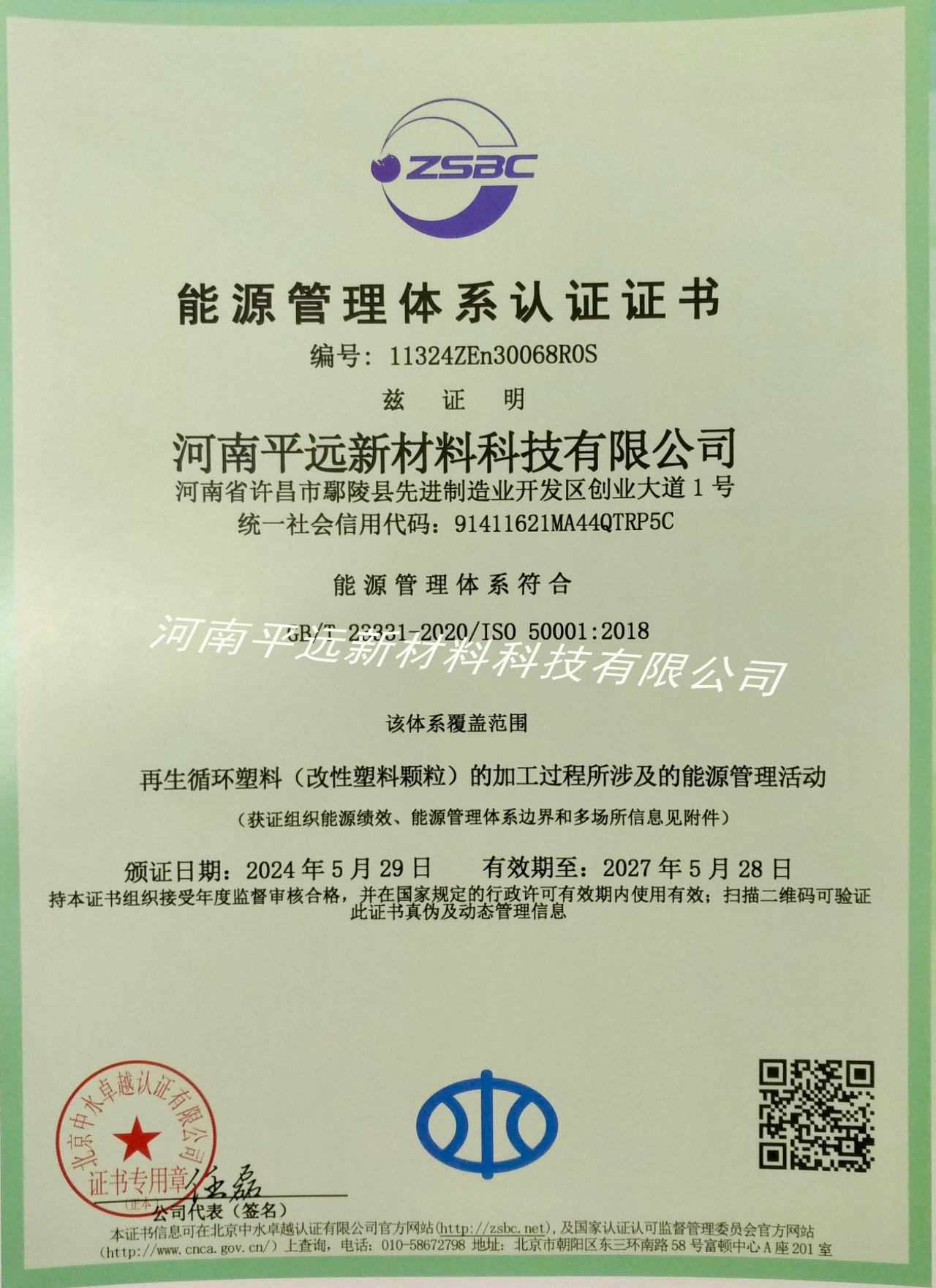 近日,河南平遠(yuǎn)新材料科技有限公司順利通過嚴(yán)格評審,獲得國家“能源管理體系認(rèn)證(Energy Management System )”證書,標(biāo)志著河南平遠(yuǎn)的節(jié)能管理工作取得巨大成效,公司能源管理體系建設(shè)邁上新臺階。