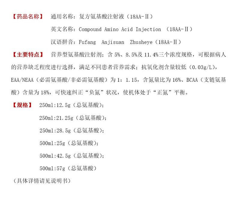 法譜 | 利日安 |利泰德安能 | 復方氨基酸注射液18AA-II